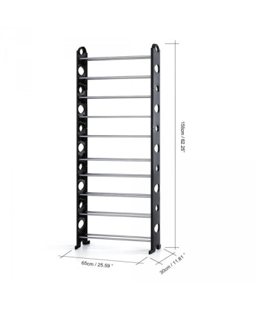 Vous pouvez ajuster la hauteur entre les différents niveaux et la distance entre 2 tiges parallèles pour convenir à différentes chaussures: bottes, baskets, talons hauts etc.